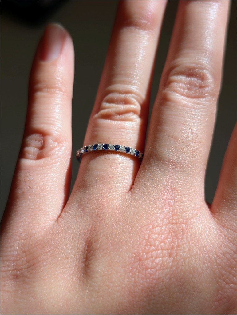 (607) 786-9670Delicate Sapphire Shared Prong Anniversary Band