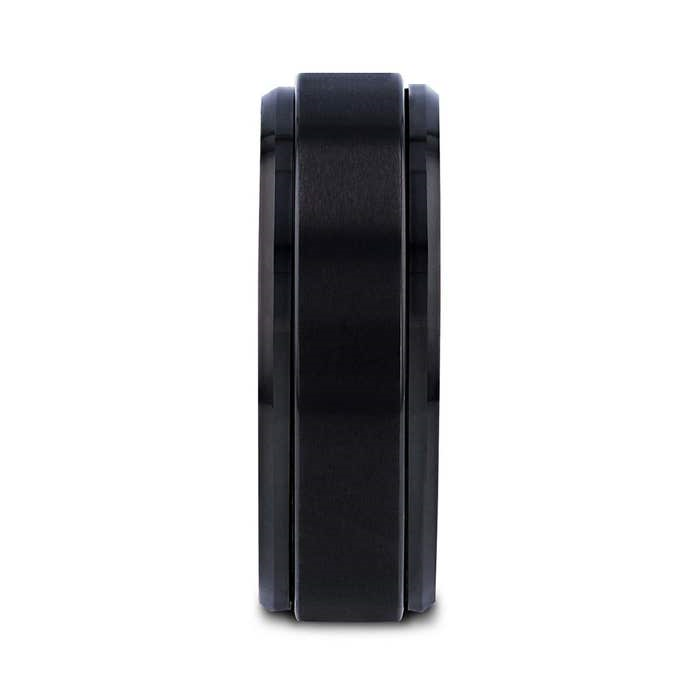 (607) 786-9670REVOLVE Black Tungsten Brushed Finish Spinner Ring Polished Base Spinning Wedding Band - 6mm & 8mm