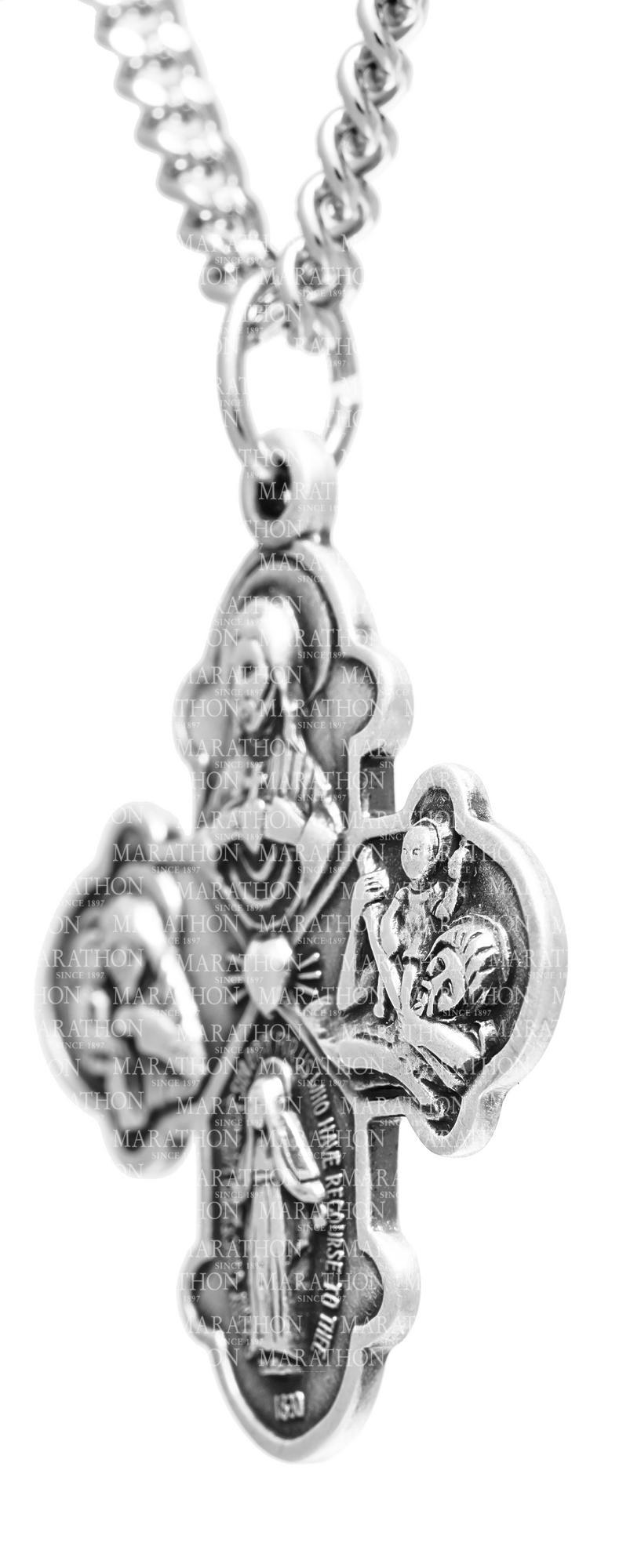 (607) 786-9670Sterling Silver Traditional Catholic Four Way Cross Medal Pendant Necklace, 24"